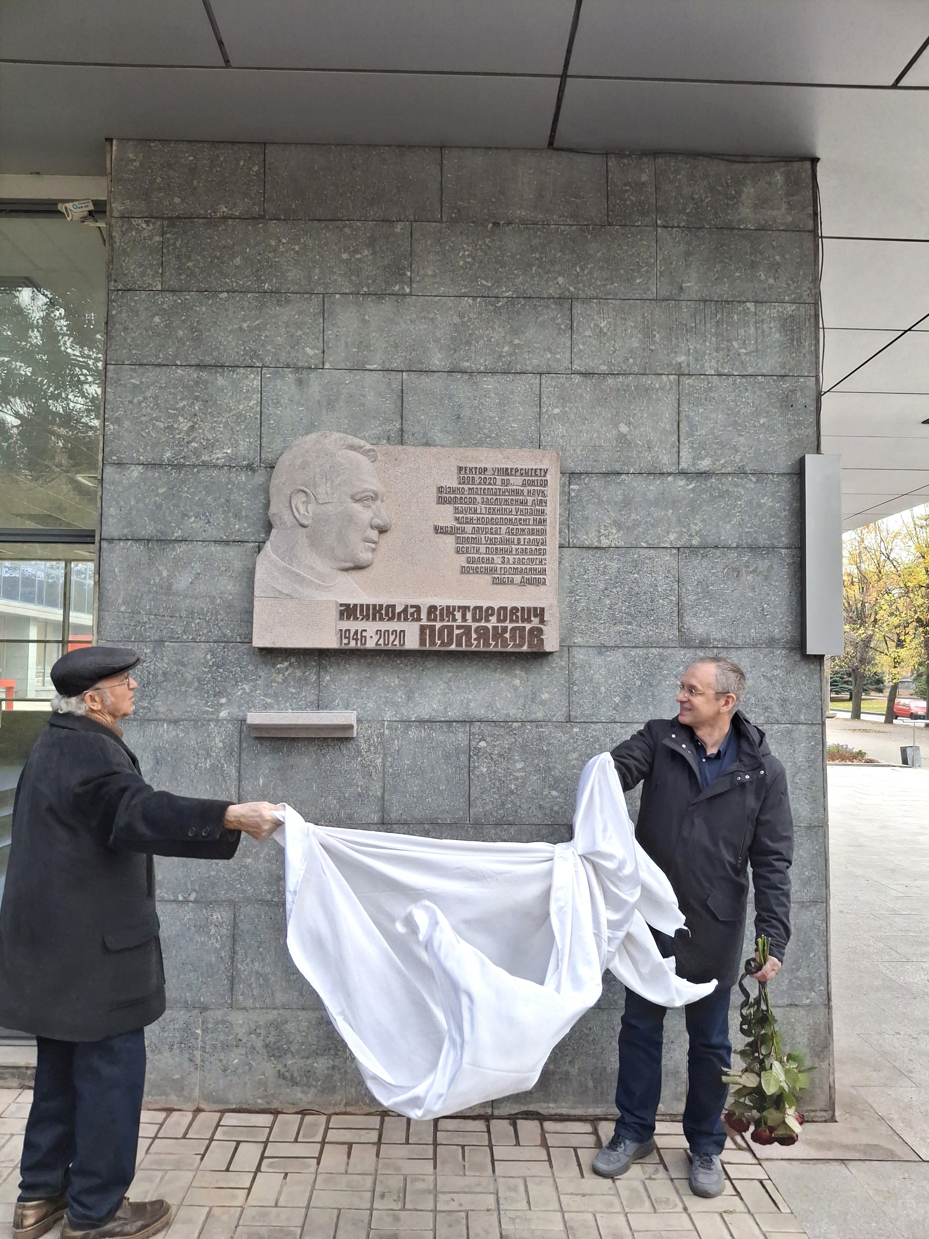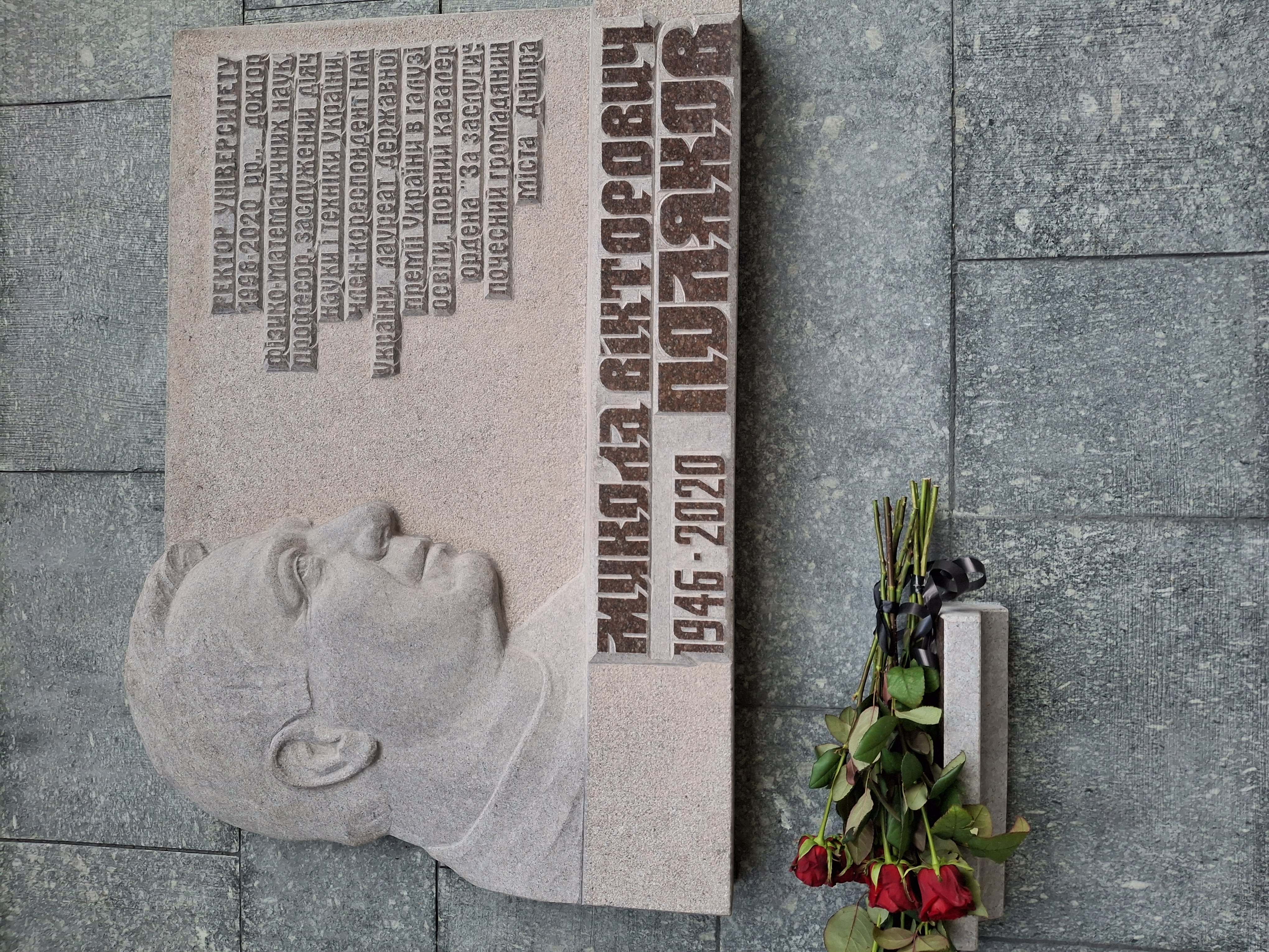 В університеті відкрито меморіальну дошку колишньому ректору, видатному вченому Миколі Вікторовичу Полякову. Пам’ятний знак встановлений на фасаді головної будівлі ДНУ – навчального корпусу №1. Микола Вікторович не тільки був видатною постаттю і багато років керував університетом, але і доктором фізико-математичних наук, професором і завідувачем кафедри диференційних рівнянь на нашому механіко-математичному факультеті. Мехматовці, колеги, учні, друзі з авжди з теплотою згадють Миколу Полякова.
